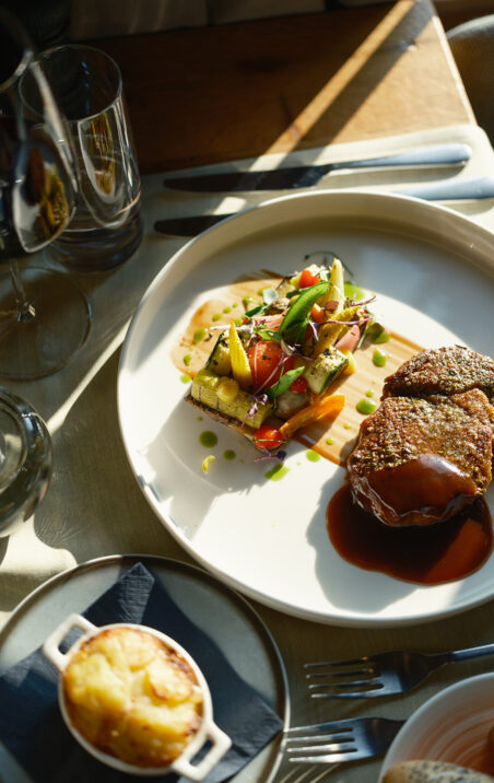 Die elegante Tubbo-Konstruktion passt sich den Jahreszeiten an: Im Winter wird sie zum exklusiven La Vue Fondue, im Sommer dient sie als Erweiterung des Restaurants und bietet die reguläre Speisekarte. Ob im Glasdome oder auf der Terrasse – geniessen Sie aussergewöhnliche Küche in besonderer Atmosphäre.