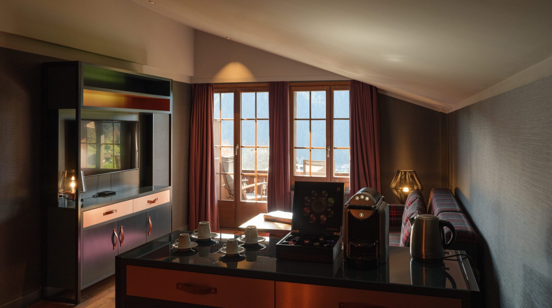 High-quality HUUS-backpacks await in each suite, ready for you to venture out and explore the stunning Swiss landscape. Deluxe Hästens beds ensure a restful night's sleep after a day of exploration or unwinding, and amenities such as Nespresso machines are set to offer a delightful boost to your day.