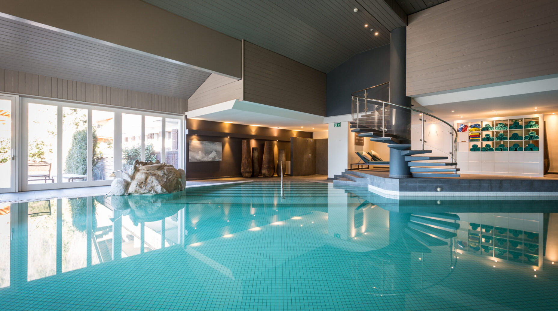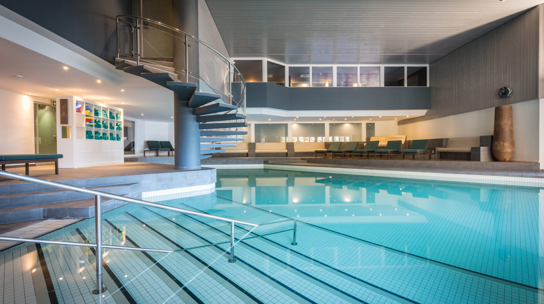 Looking for a calm environment for swimming and relaxation? Our heated 135 m² swimming pool is the perfect place to exercise and unwind. Enjoy a peaceful atmosphere with comfortable lounge chairs, soft lighting, and large panoramic windows offering breathtaking views of the Swiss Alps. Soak up the sun on our adjoining sundeck or use it for a yoga session. The tranquil surroundings make this the ideal space to swim, stretch, relax, and recharge.