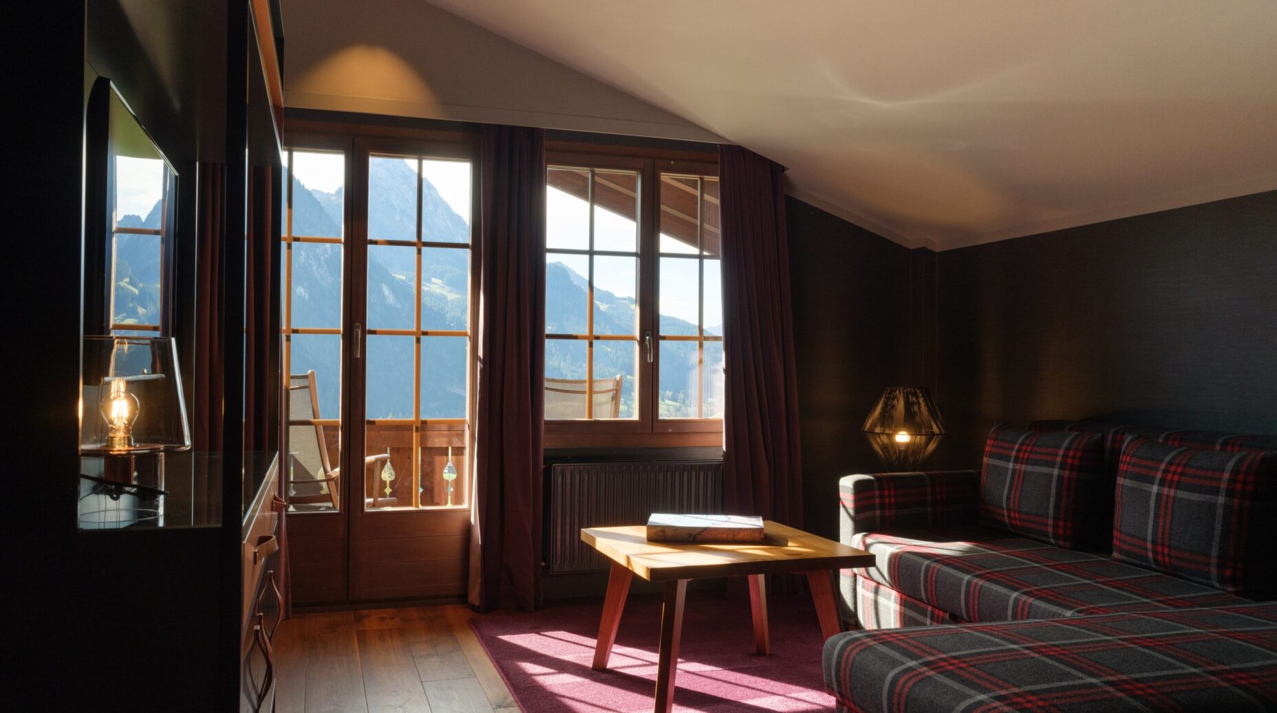 Chaque suite se distingue par son charme unique, combinant des éléments suisses traditionnels avec un style moderne. Les espaces généreux permettent aux invités de se détendre dans un cadre luxueux. Le salon privé est aménagé avec des canapés moelleux et des couvertures douillettes, offrant l'endroit parfait pour se relaxer dans l'atmosphère chaleureuse du HUUS Gstaad.